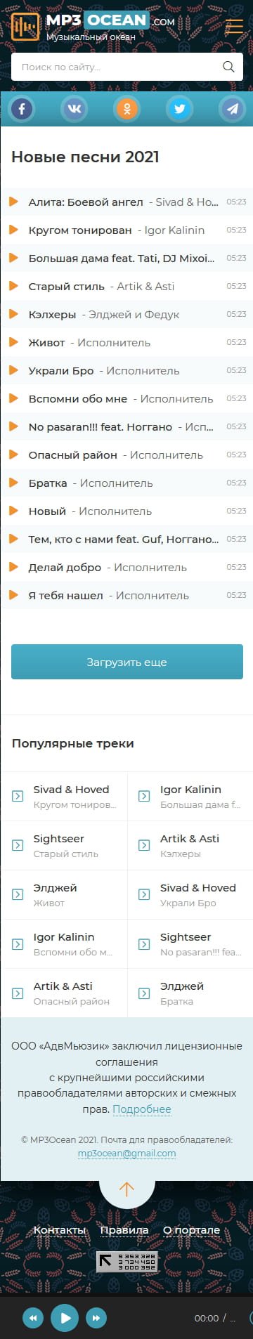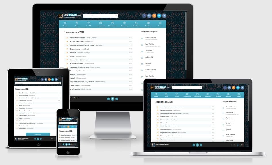 ✅ MP3 Ocean - лёгкий музыкальный шаблон для DLE